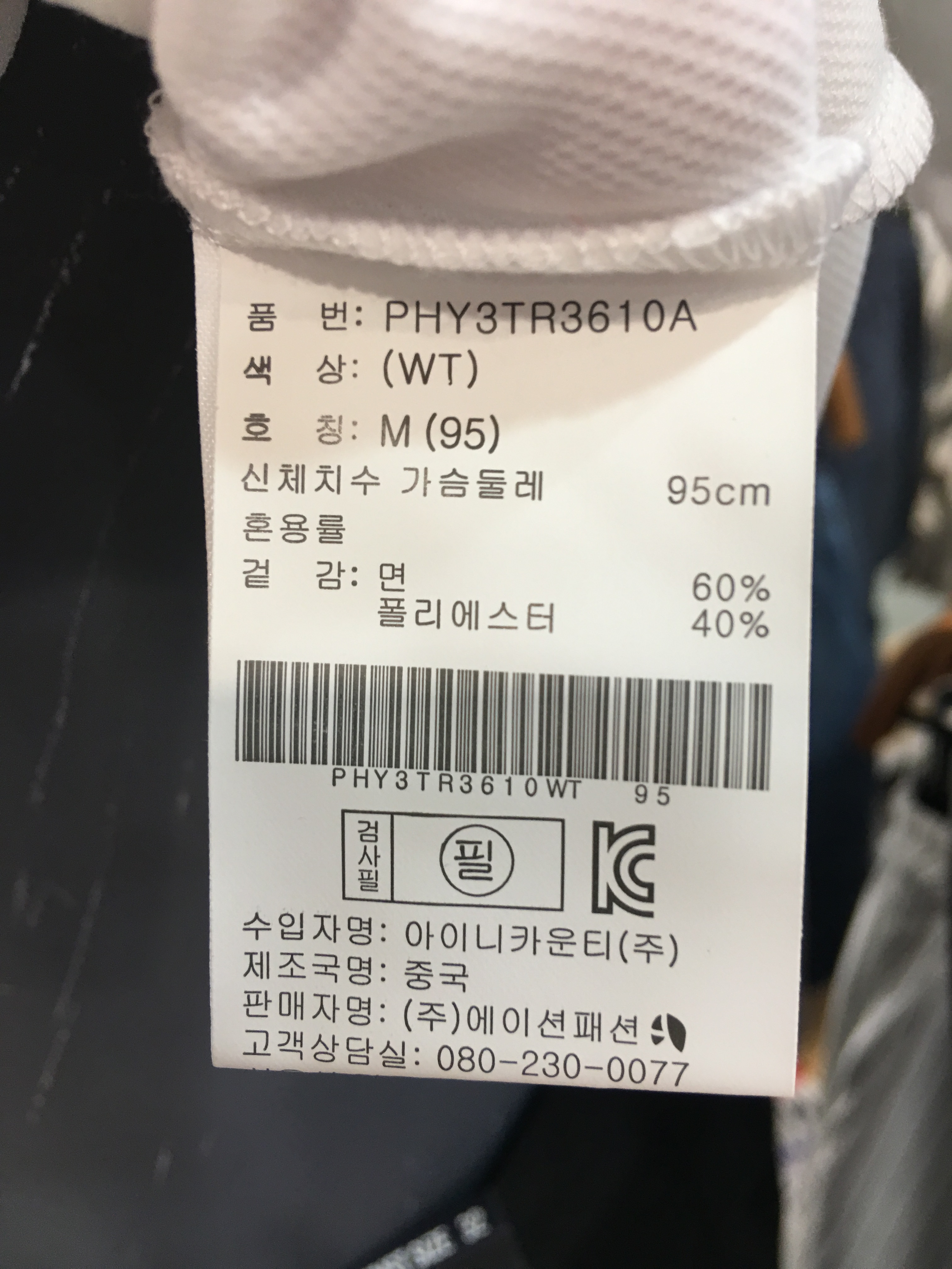 면60%,폴리에스터 40%인 혼용의