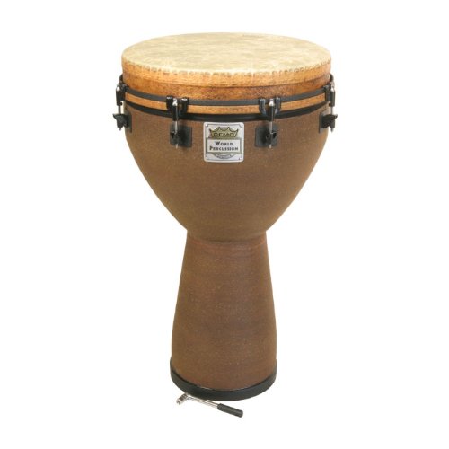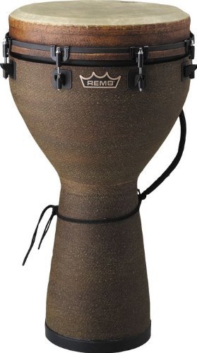 Studio : Remo Publisher : Remo Product Description REMO Djembe Drums are the most popular of all of their World Percussion instruments. Key-tuned REMO djembes are as widely used by touring professionals as they are in drum circles. The high slaps and deep bass tones from all REMO Djembes are from the Type 2 FIBERSKYN 3 drumhead and ACOUSTICON shell. This 14-inch model featuers 8 lugs and an Earth-pattern FabriFinish covering. DjembeRemo djembes are based upon the traditional drums of the West African Mandingo people, originating from the great Mali Empire of the 13th and 14th century. Developed with the assistance of world-renowned Djembe players, Remo's key, rope, and cable-tuned Djembes feature superb sound quality, lightweight design, are easily tuned in any kind of weather, and always easy to play. 0