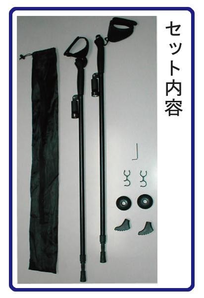 | 素材・材質 | 本体:アルミパイプ(特殊アルマイト加工) グリップ:ポリプロピレン ストラップ:ナイロン 先端キャップ:合成ゴム(TPR) 専用収納袋:ポリエステル |