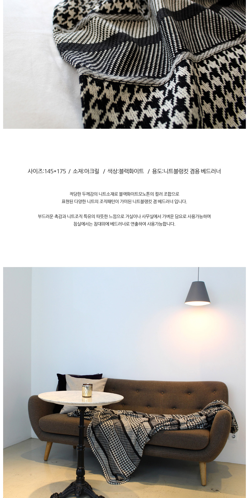 쇼파위에서 가벼운 담요로 사용가능하며 또는 침대 위 베드러너로 연출하여 사용가능합니다.
