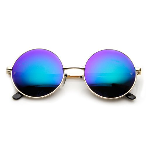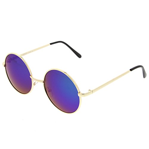 zeroUV - Mid Sized Metal Lennon Style Flash Mirror Round Sunglasses