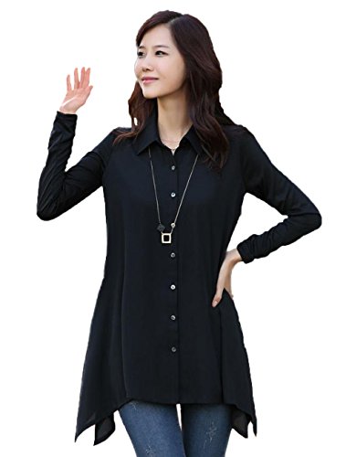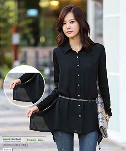 -. Title : (ナンディン) nandin シフォン ブラウス 長袖 レディース トップス ゆったり 体型 カバー 黒