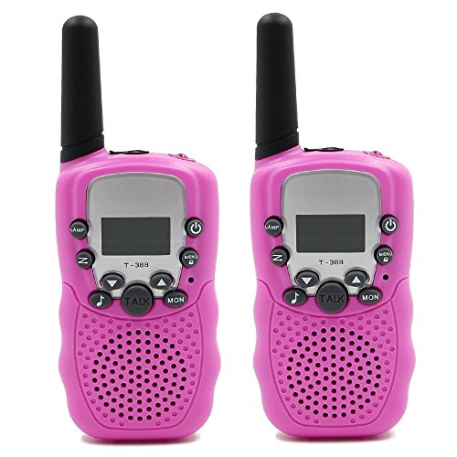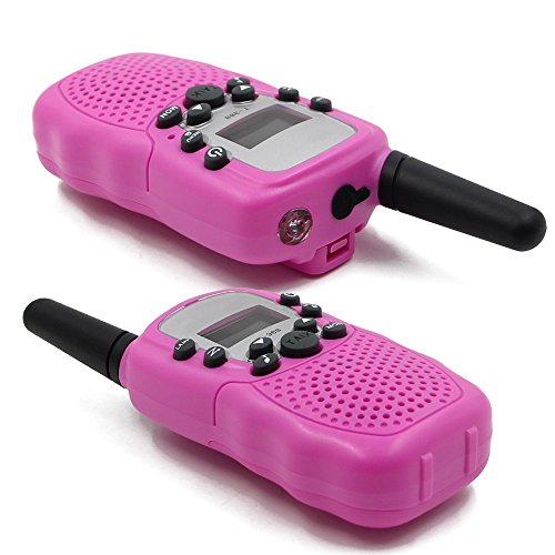 Kids Walkie Talkies Long Range Two Way Radio 3KM 22 Channels Battery Operated Handset with Indicator and Belt Clip for Children Outdoor Camping Hiking 2 PCS(Pink)