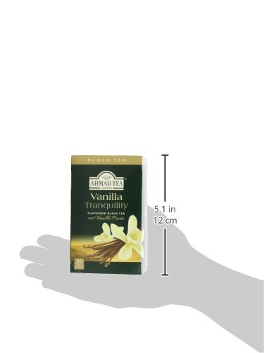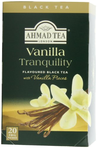 -. Binding : Grocery -. Brand : Ahmad Tea -. Feature : Case of six boxes, each containing 20 foil-wrapped tea bags (120 total tea bags) / Blend of Ceylon and other origin teas with vanilla flavoring / Stimulating tea with a resonant, vanilla aroma / Enjoy the rare pleasure of a fine English tea -. Label : Ahmad Tea -. Manufacturer : Ahmad Tea -. Model : 711 -. MPN : 711F -. NumberOfItems : 6 -. PackageQuantity : 6 -. PartNumber : 711F -. ProductGroup : Grocery -. ProductTypeName : GROCERY -. Publisher : Ahmad Tea -. ReleaseDate : 2006-02-27 -. Studio : Ahmad Tea -. Title : Ahmad Tea Vanilla Tranquility Black Tea, 20-Count Boxes (Pack of 6)