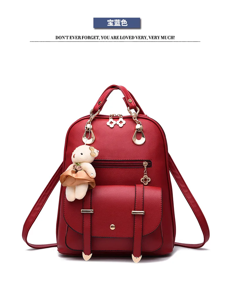 2017 High Quality Fashion Arrival Women Backpack Spring Summer Students Double Zipper Backpack Travel Backpack Free Bear Gift