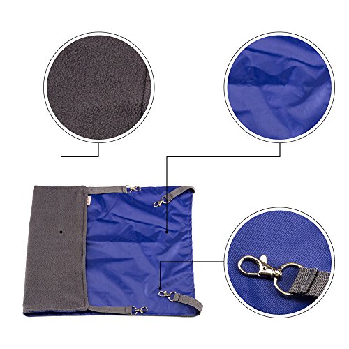 Studio : Basen Publisher : Basen Binding : Misc. Product Description Basen Pet Hanging Hammock suitable for kitty, ferrets, guinea pigs, chinchillas, pet rats, and other small animals under 15kgs. The flannel side is warm in winter, the waterproof oxford side is perfect for summer day. Both of the side in different material. Attaches easily to any metal cage with the included clips. The hammock easy to install and wash. Application: can be used for kitty, ferrets, guinea pigs, chinchillas, pet rats, and other small animals under 15kgs. Warranty: 100% satisfaction guarantees, once you find any problem of the product please feel free to contact us, we will make you excellent shopping experience. Size: Length*56 cm(22.05 inch), Width*35 cm(13.8 inch) Material: Waterproof nylon Super soft flannel. Color: Rose red, Blue, Purple. Package include: 1 piece Pet Hanging Hammock. Notice: The hammock hook length is not adjustable.