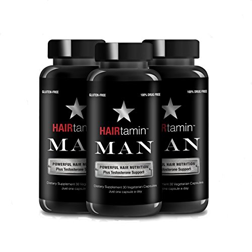 Our highly anticipated HAIRtamin MAN is finally here! HAIRtamin MAN is a powerful growth enhancing supplement formulated with scientifically proven ingredients that strengthen and nourish hair follicles and support healthy testosterone levels. The combination of vitamins A, C, D, and an essential vitamin B complex promotes thick, full hair and promotes the prevention of unsightly dandruff that can disrupt hair growth. The specific blend of potent extracts like Green tea, Turmeric, Resveratrol, and Aloe Vera also helps block the activity of DHT, a substance that causes hair loss in men. Additional ingredients like Brahmi, Stinging Nettle, and Rosemary ensure the long-term health of your hair. For all hair types.Feature