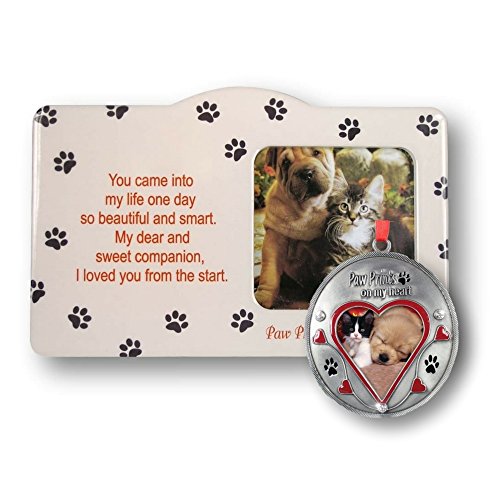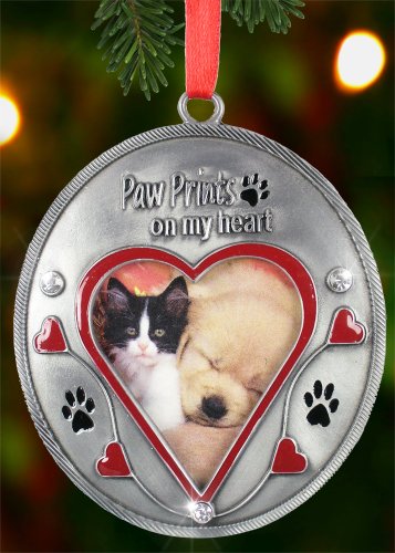 - PET MEMORIAL GIFT SET. Nice set of a picture frame and memorial photo Christmas ornament. This loving saying for your pet, "You left paw prints on my heart" would work as a thoughtful gift for anyone who is grieving the loss of their furry friend.