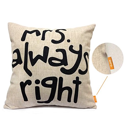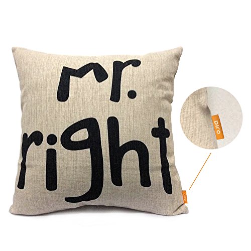 - Feature : Made of 100% grade A cotton blend liene natural material / Size: 18 x 18 inches / 45 cm x 45 cm / Features patterns of Mr. and Mrs. Right / Hidden zipper design, Safe to machine wash / Pillow insert are not included