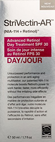 From the makers of bestselling, award winning StriVectin-AR advanced retinol night treatment. Now, for day. Our daily multi-tasker has broad spectrum SPF 30 protection and fights the major signs of aging, including texture, firmness and wrinkles. Combining StriVectin's patented, scientifically proven NIA-114 molecule, this breakthrough retinol cream harnesses the potency of retinol, the gold standard in anti-aging, without the retinol side effects-including skin irritation, peeling, redness and sensitivity. HOW TO USE : Apply to clean face in the PM. Massage evenly and gently into skin following Advanced Retinol Concentrated Serum.Feature