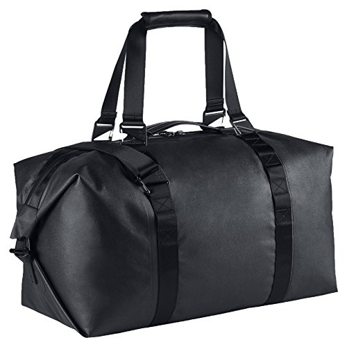 -. Binding : Sports -. Brand : -. Color : Black -. EAN : 0885259497128 -. Feature : Dual handles and adjustable shoulder strap for easy carrying. / Zip main compartment for spacious storage. Packs down into a pouch. / Welded zippers for water-resistant protection. / Small valuables pocket for storing small items securely. / Dimensions: 21" L x 11" W x 14" H. Fabric: 100% polyester -. IsAutographed : 0 -. IsMemorabilia : 0 -. Label : -. Manufacturer : -. Model : BA4386-030 -. MPN : NIBA4386_030_Black_50 x 25 x 5 cm, 5 Liter -. PackageQuantity : 1 -. PartNumber : NIBA4386_030_Black_50 x 25 x 5 cm, 5 Liter -. ProductGroup : Sports -. ProductTypeName : SPORTING_GOODS -. Publisher : -. Size : X-Large -. Studio : -. Title : Eugene Duffel Bag -. UPC : 885259497128