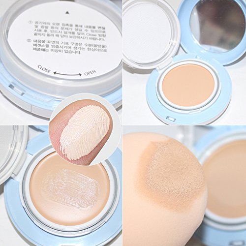- Feature : When rubbled with puff or hands, water essence pops with moisture essence. / Control excess amount of sebum giving soft and silky pores. / Quick moisture lock 10 kinds of skin care ingredient gives moisture firm youthful skin. / Fruit extract (grape, plum, orange) protects damaged skin from external environment giving clear skin tone. / How to Use : Use puff to rub gently and use right amount to tap gently to finish.