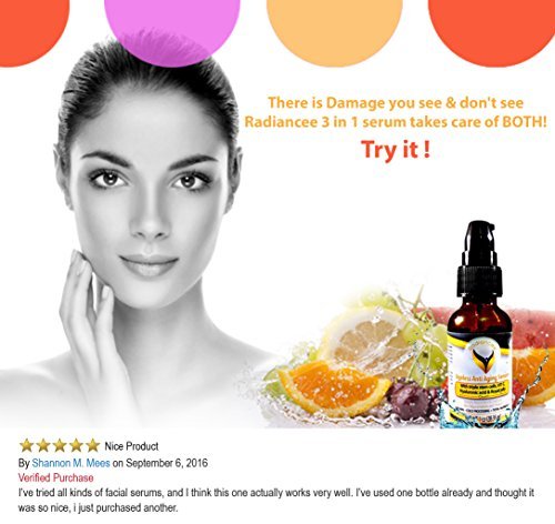ONE YEAR MONEY BACK GUARANTEE We are so confident that Radiancee Ageless facial serum is the best Anti Aging serum in the market which is guaranteed to give results that we back all of our products by a 365-day, 100% Hassle-Free, money back guarantee. If you are not satisfied with our products we will give you a full refund.