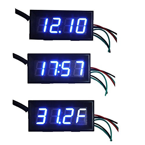 Holdding Fahrenheit Scale °F 0.56" DC 12V Digital Car Clock Thermometer Voltmeter 3in1 Blue LED Auto Gauges DS18b20 Electronic Clock with Anti-reverse Protection Probe