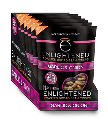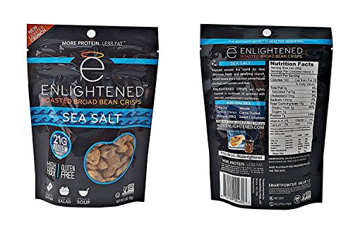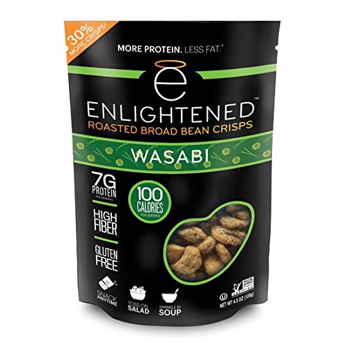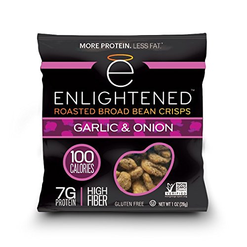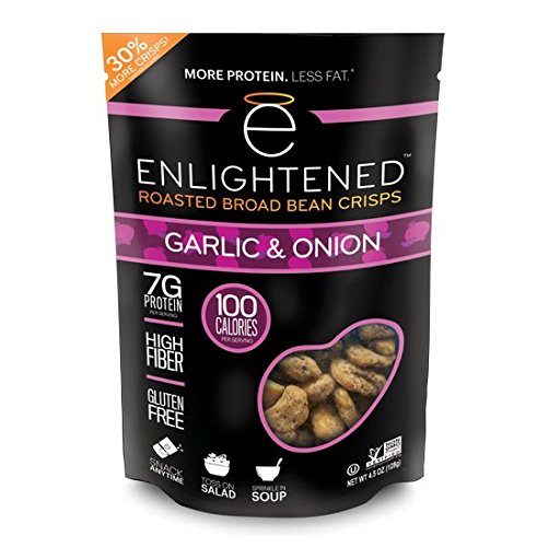 A healthy, delicious roasted broad (fava) bean snack that is lightly roasted in sunflower oil and seasoned to perfection. Our crisps are low-calorie, with just 100 calories per snack-sized serving (40% fewer than almonds)--a healthy snack that doesn't compromise on taste! ENLIGHTENED crisps are low-calorie, all-natural snacks that are packed with 7g protein and 5g fiber, low in sugar (1g) and fat, and full of delicious flavor. They're also non-GMO project verified, gluten-free, and vegan. A great nut, chip, or crouton alternative.Feature