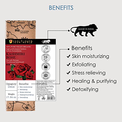 REFRESH AND IMPROVE YOUR SKIN; UPLIFT MOOD, RELAX MUSCLES: Kashmiri Rose sea salt therapy is known for its healing, purifying properties and cleansing, moisturizing and exfoliating your skin. MAKE IT A USEFUL SCRUB: Mix with any Soulflower essential oil or massage oil to make an effective body scrub.