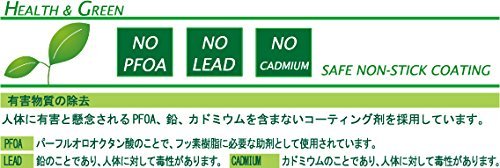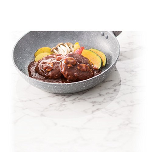 Usable with gas stoves and IH200V electromagnetic cookers. Pan face has five layers (primary coat, middle coat, top coat, two layers of marble) and needs less oil when cooking. Thinness of 3.2mm helps promotes heat conduction. Can cook at high or low temperatures thanks to the panfs heat retaining properties Easy-to-hold heavy handle (silicon coating) and easy to clean marble coating. Comes with a handy spatula. The set includes; 26cm diameter frying pan, 1 spatula