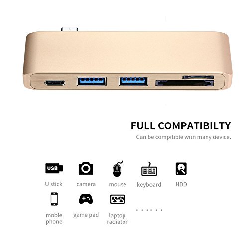 Expand your Type-C port - The Type-c Hub with 2 USB 3.0 ports, a SD and Micro SD card slot, and a USB-C charging port. Designed for new Type-C products, including new 12" MacBook, MacBook Pro 13" and MacBook Pro 15" as well as other USB Type-C devices like Chromebook Pixel.