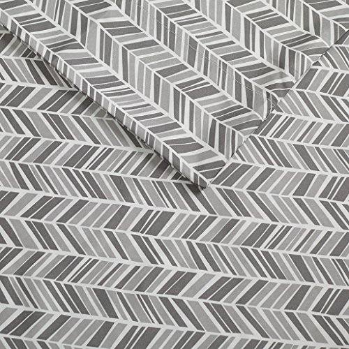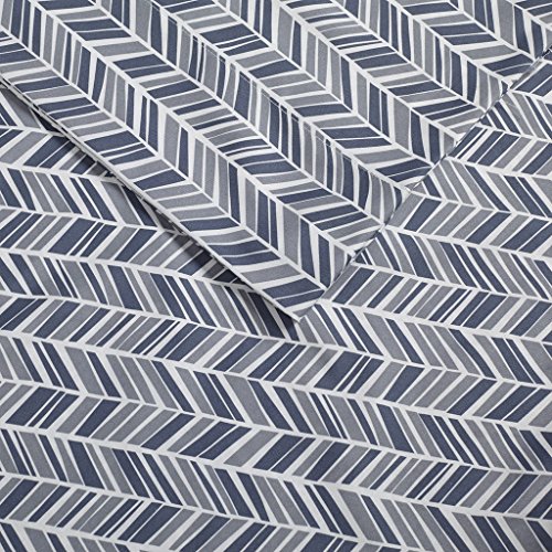 Chevron Microfiber Printed Sheet Navy Queen
