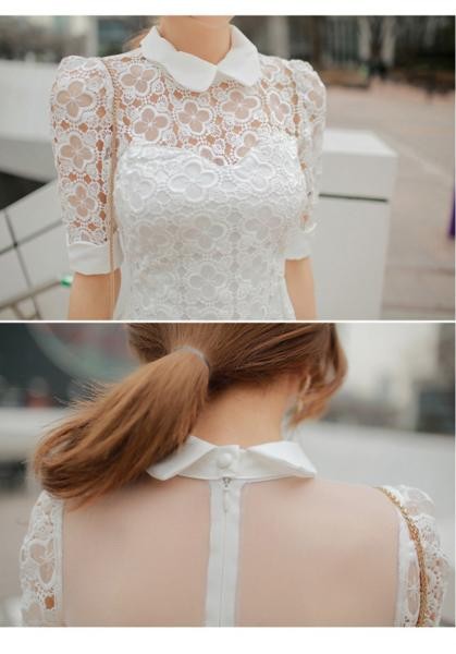 レース 半袖  白 夏 フレア