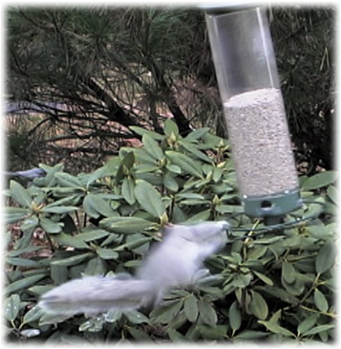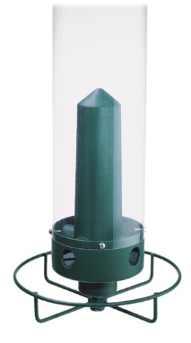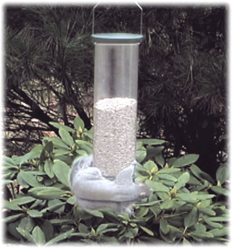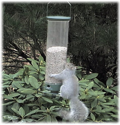 -. Feature : Hanging bird feeder with microban antimicrobial technology / 4 feeding ports can be easily accessed via the perch ring; internal baffle / Squirrel-triggered motor spins the feeder to quickly remove squirrels / Clear UV-stabilized polycarbonate feeder; 5-pound capacity; heavy metal cap / Measures 8.5 x 8.5 x 28.5 inches; limited lifetime warranty; 1-year electronics warranty