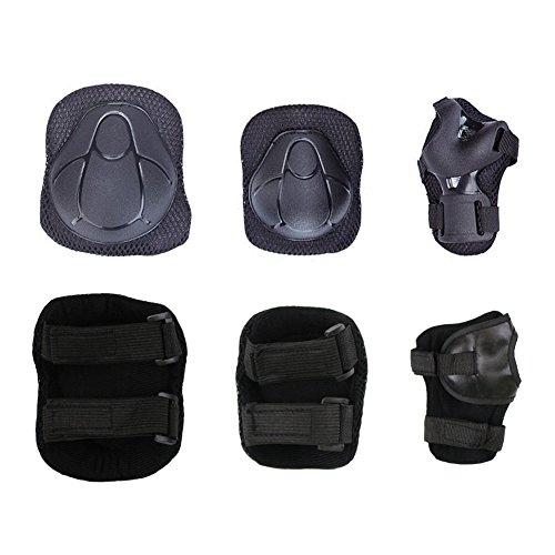 -. Feature : Made of PVC guards and breathable,soft EVA padded material. Shock absorption cushioning lining inside reduce injuries during movement. / Flexible straps of protective gears make you comfortable in sports. / Including knee pads, elbow pads and wrist guards. Bring you all-round and perfect protection. / Perfect for children inline skating, roller blading, skateboard, biking, cycling, and other outdoor sports.