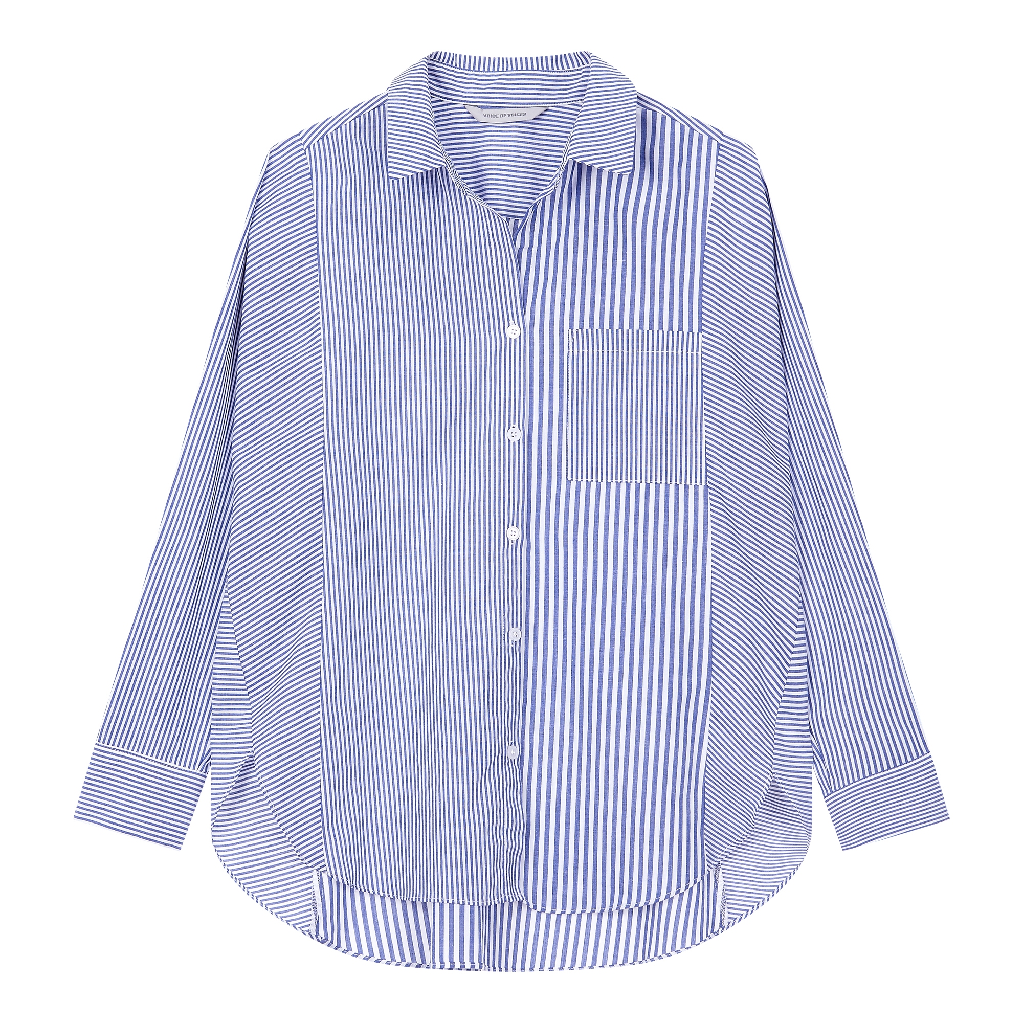 컬렉션 : 2018 Fall/Winter 디자인 포인트 : - 언발란스한 스트라이프 패턴 디테일이 돋보이는 캐주얼한 무드의 블라우스- 앞 뒤 길이가 다른 디테일로 트렌디함을 더한 디자인- 면 소재로 부담없이 스타일링 하기 좋은 포인트 아이템 스타일링 추천 : 다양한 워싱의 스키니진 혹은 슬랙스 팬츠와 트렌디한 스타일링을 연출 할 수 있음