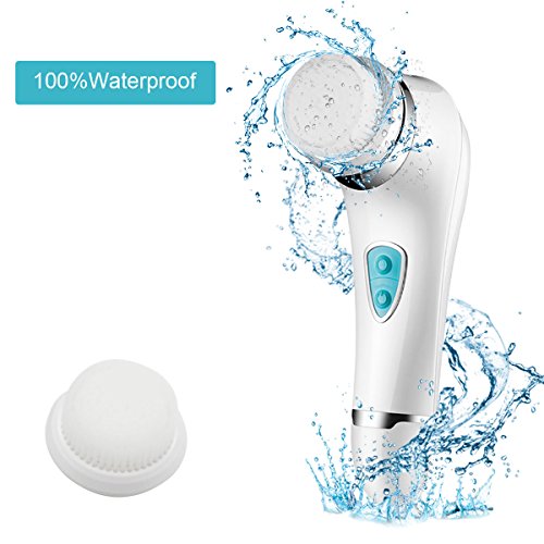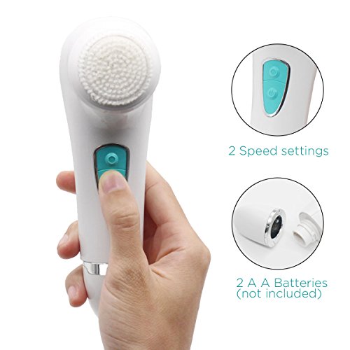 - 100% Waterproof: Electric Facial Brush is IPX5 waterproof which makes it the perfect shower buddy! Easy to clean! Up to 1.5M depth under water.It is powered by 2 AA batteries (not included).
