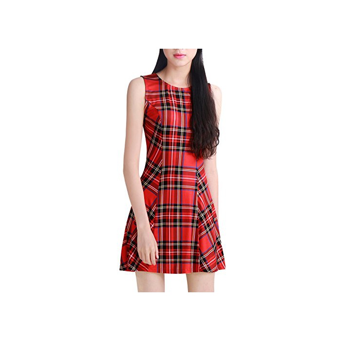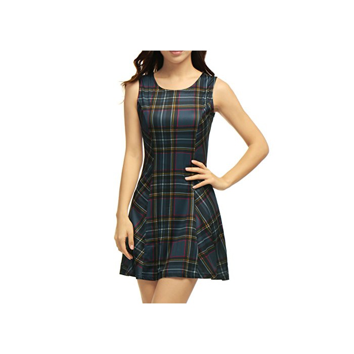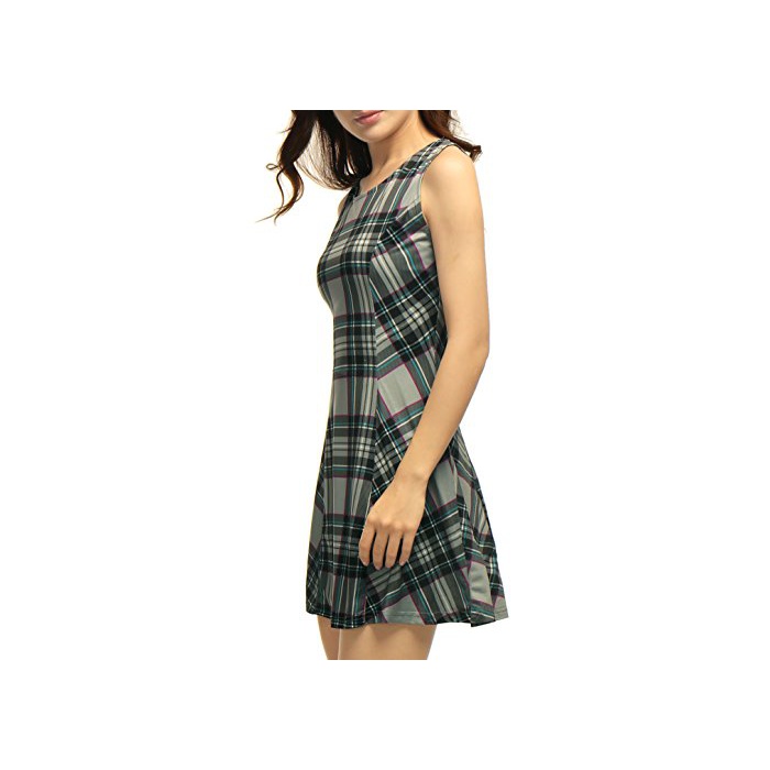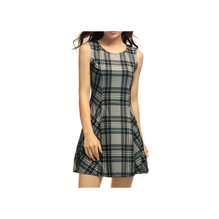 원본상품명: Allegra K (JP) レディ?ス フレアワンピ?ス Aラインドレス クル?ネック 袖なし チェック柄