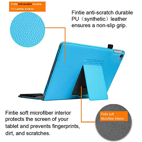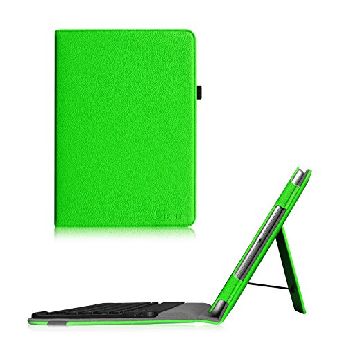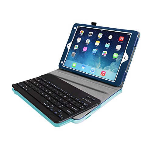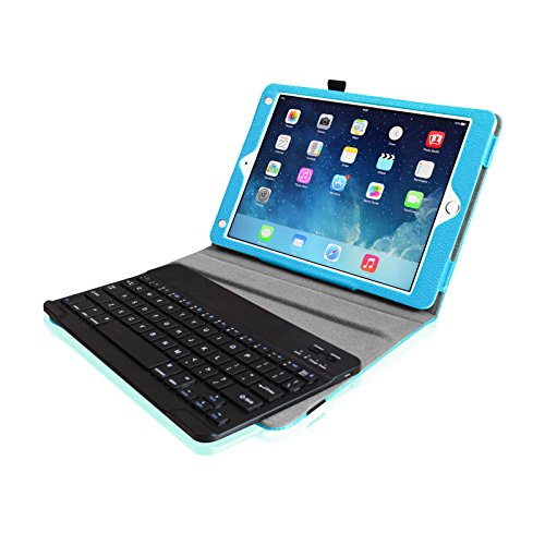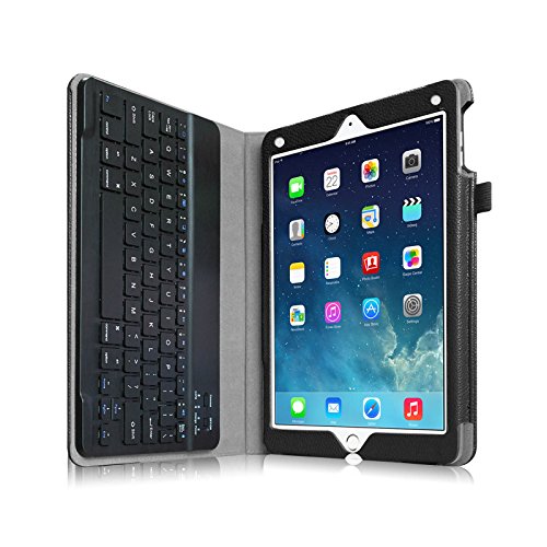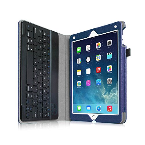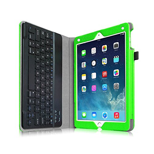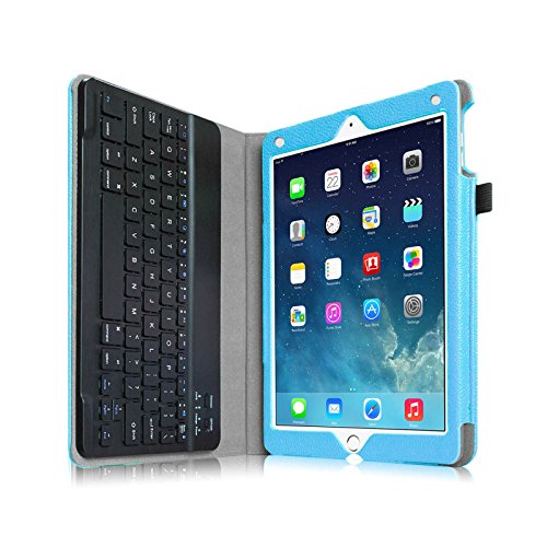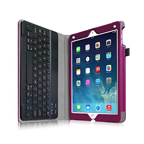 [Description] Specifically designed for iPad air 2(iPad 6th_2014 Release). Detachable ultra slim 7mm and light weight bluetooth keyboard with 10M range. Real hard laptop style keyboard with high end ABS material. Not cheap silicone keyboard as other cases in market. A spring mechanism underneath each key ensures a tactile response with every stroke_ helping you to type faster and with less error than on Removable Bluetooth keyboard integrates seemlessly with your iPad and other Bluetooth enabled devices Slim_ durable leather like cover that protects your device. Adjustable stand securely holds your iPad in landscape mode. Designed with a smart holder for stylus/pen (stylus NOT included). This product is sold exclusively by Fintie. Only buy from Fintie to get genuine Fintie(TM) products with manufacturer warranty and superb customer service. Real ``hard`` laptop style keyboard with high end ABS material. Not cheap silicone keyboard as other cases in market. A spring mechanism underneath each key ensures a tactile response with every stroke_ helping you to type faster and with less error than on a touchscreen. Available in a variety of bright and fun colors. Please search ``Fintie`` for more options.