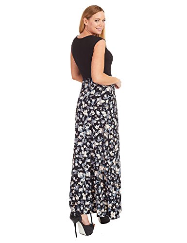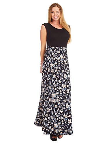 Womens Print Contrast Sleeveless Empire Line Maxi Dress