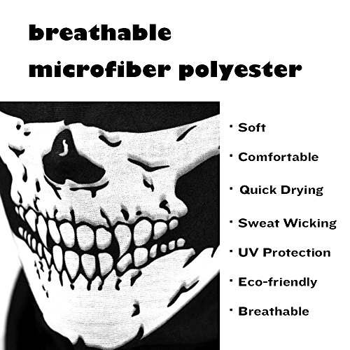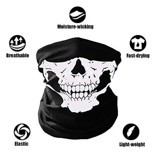 Skull Mask for Cycling, Hiking, Camping, Skiing, Climbing, Fishing, Hunting, Jogging, Motorcycling, Tennis etc. For men, women, child, teen, adult in any outdoor activity. Offering an awesome frightening visual impact in your costume party or outdoor activity.