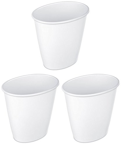 Sterilite 1.5 Gallon Oval Vanity Mini Tidy Wastebasket, White, Set of 3
