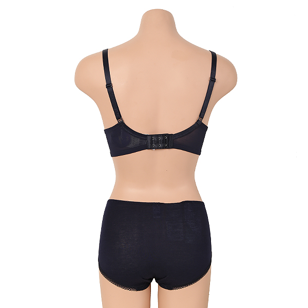 네이비컬러로 블랙 대용으로 착용 가능하며 딥브이 스타일로 뜨지않게 잡아주며 몰드에 내장된 실리콘 소재의 와이어로 편안한 착용감과 고밀도 사이드 패널로 가슴을 자연스럽게 모아줍니다. 팬티는 펜셀 소재로 촉감이 부드럽고 엉덩이를 전체적으로 감싸주어 편하게 착용 가능합니다.