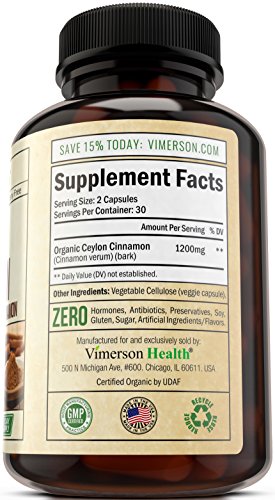 Vimerson Health's Organic Ceylon Cinnamon capsules are made in GMP-certified facilities in the USA. Each container includes 60 vegetarian capsules, enough for a month of supply. Additionally, this supplement is backed up by our 100% SATISFACTION GUARANTEE, so you'll get your money back if it doesn't help you feel your best!