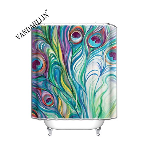 Flawless peacock feathers Watercolor painting Bathroom Shower Curtain 72" x 84" Long ,Hooks Sets Included ,100% WaterProof Polyester Fabric Bath Shower Curtain
