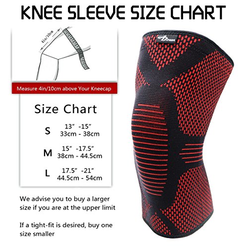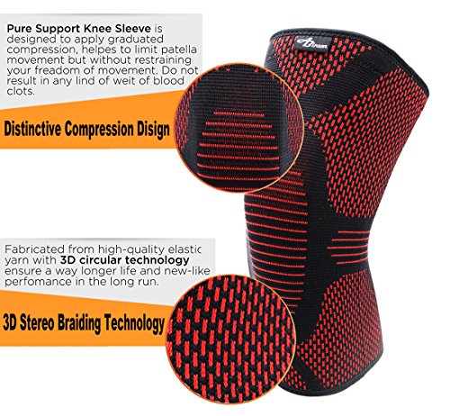 Knee Compression Sleeves Brace Support (Pair) for Running, Jogging, Sports, Joint Pain Relief, Arthritis & Injury Recovery