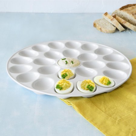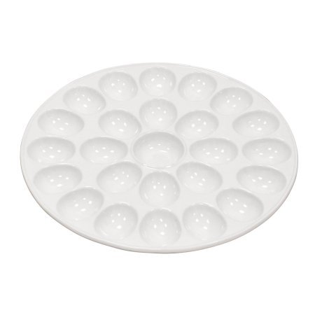 Studio : Better Homes and Garden Publisher : Better Homes and Garden Product Description This classic round porcelain egg platter from Better Homes and Gardens has room for 24 deviled eggs. It is elegant enough for entertaining your family and friends for during the holidays or any day of the week. It also features a center opening for salt and pepper or a dip of your choice and is made from porcelain so it is microwave and dishwasher safe. Pair this with other porcelain dinnerware and serve ware from Better Homes and Gardens to make a statement and fulfill all of your entertaining needs. Additional items can be purchased from our assortment in stores and online. Item does not ship in a gift box, but is packed safely in a re-shipper for shipping. 0