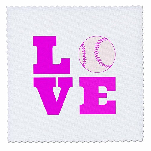 3dRose qs_200768_10 Love Softball Pink White-Quilt Square, 25 by 25-Inch