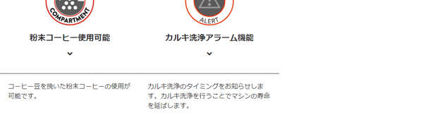 ●カルキ洗浄アラーム機能:カルキ洗浄のタイミングをお知らせします。カルキ洗浄を行うことでマシンの寿命を延ばします