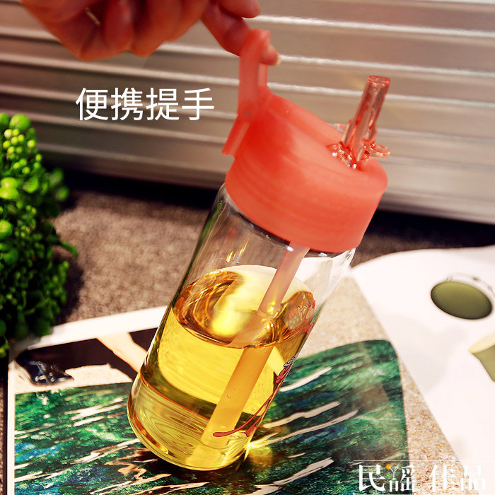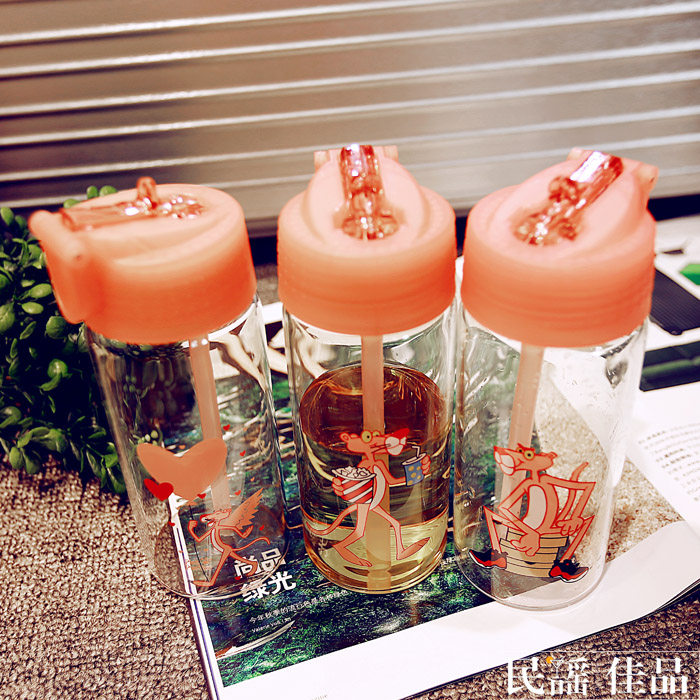 韩版可爱玻璃杯女学生卡通便携随手杯创意成人吸管杯清新简约杯子