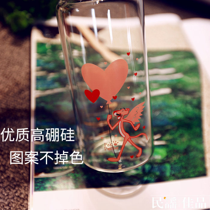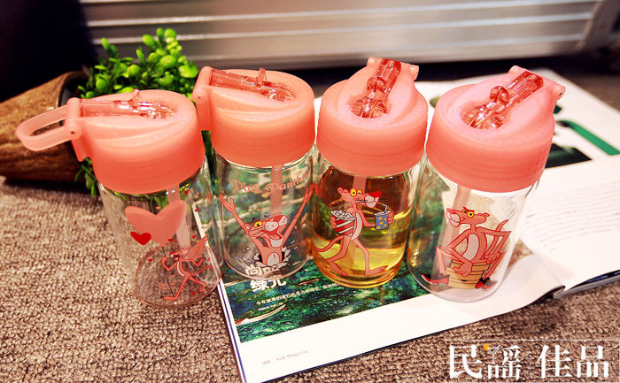 可爱粉红豹吸管杯