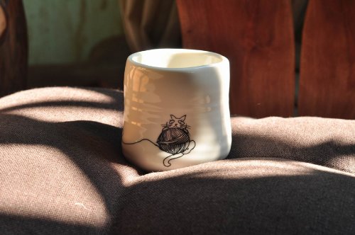 Top Collection Enchanted Story Fairy Garden Cup Cat and Yarn Outdoor Statue, Set of 2