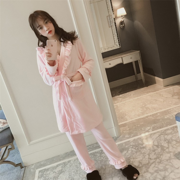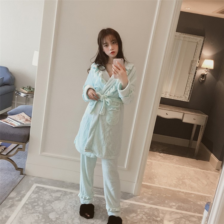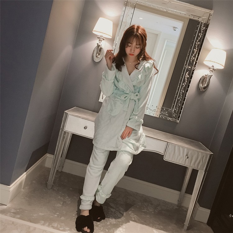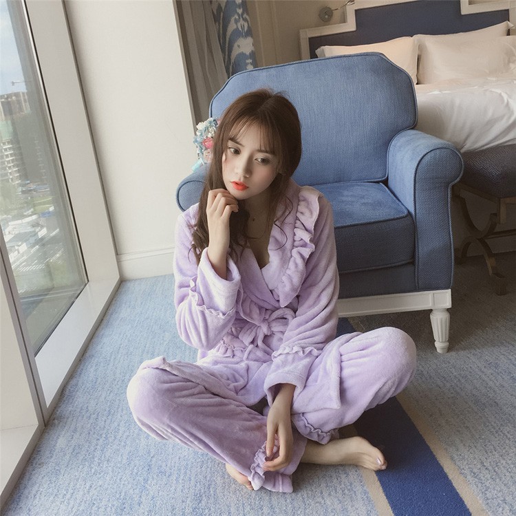 製品の説明 159 【素材】:ポリエステル 【カラー】:ピンク、グリーン、パープル 【サイズ】:(約)  *参考体重:52.5kg以内(M) 52.5-65kg(L) ) 連携キーワード:パジャマ レディース セットアップ 秋冬 長袖 前開き パジャマ フレア 厚手 上下セット 暖かい 部屋着 ルームウェア 寝巻き 大人可愛い オシャレ 新作 3色