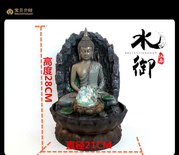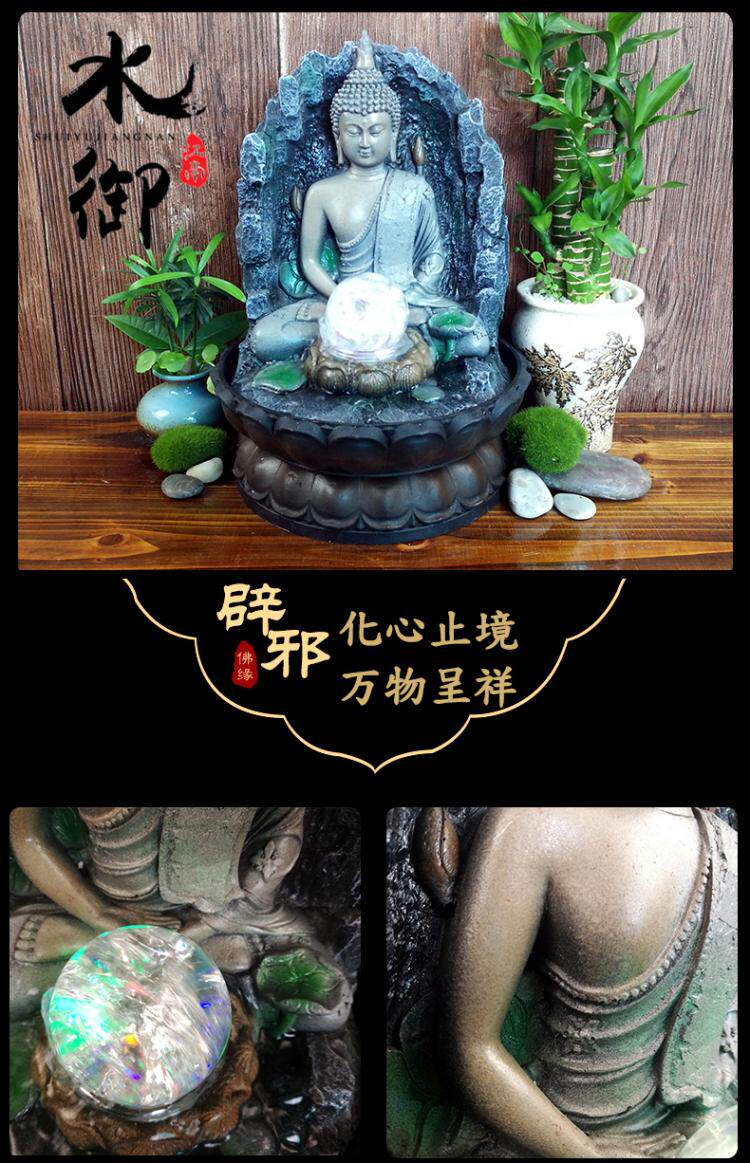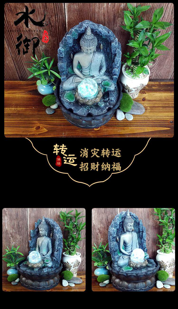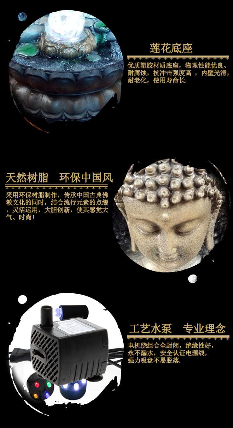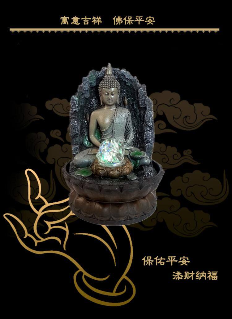 桌面招财流水摆件禅意喷泉客厅加湿器东南亚家居装饰品佛像摆设