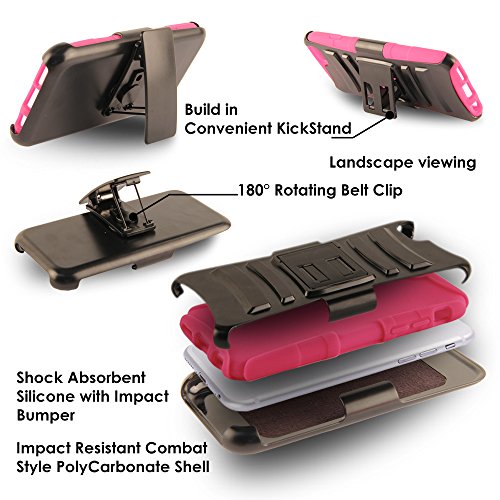 Beyond Cell ®premium protection armor combo Protex (Hard Shell) and Silicone Case by Beyondcell and experience the peace of mind of knowing your investment is well protected. Flexible, yet stronger and more durable than silicone, TPU offers excellent shock absorption and abrasion resistance while maintaining a thin form factor. The Outside Protex is made of Hard Pastic, It protects your phone from high impact falls. 100% brand new and fits your phone perfectly. 180 degrees swivel holster allows your phone to be worn on a waistband or belt. Belt clip and case both have a kick stand for easy hands free viewing. Beyond Cell ® is registered Trademark.Feature