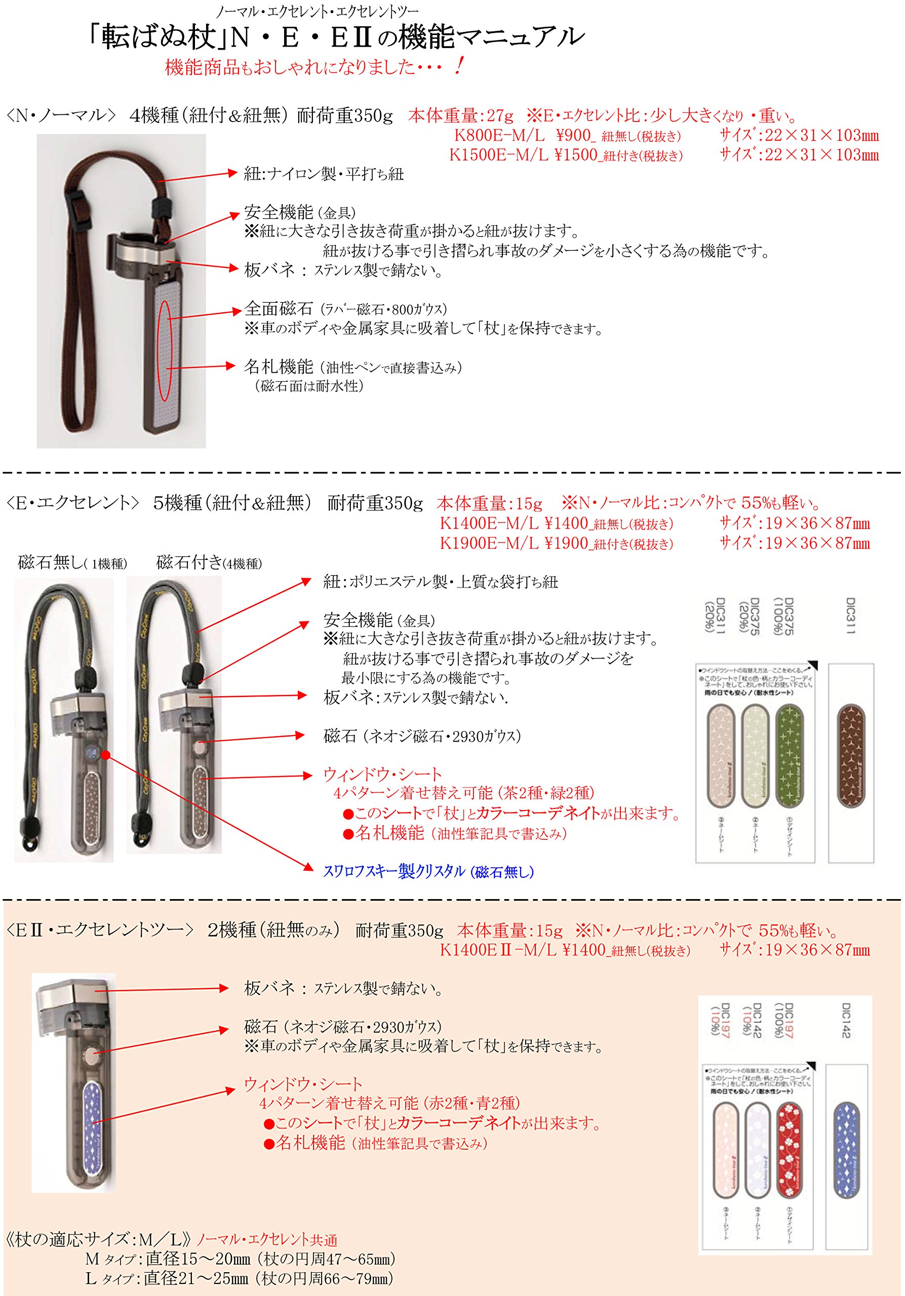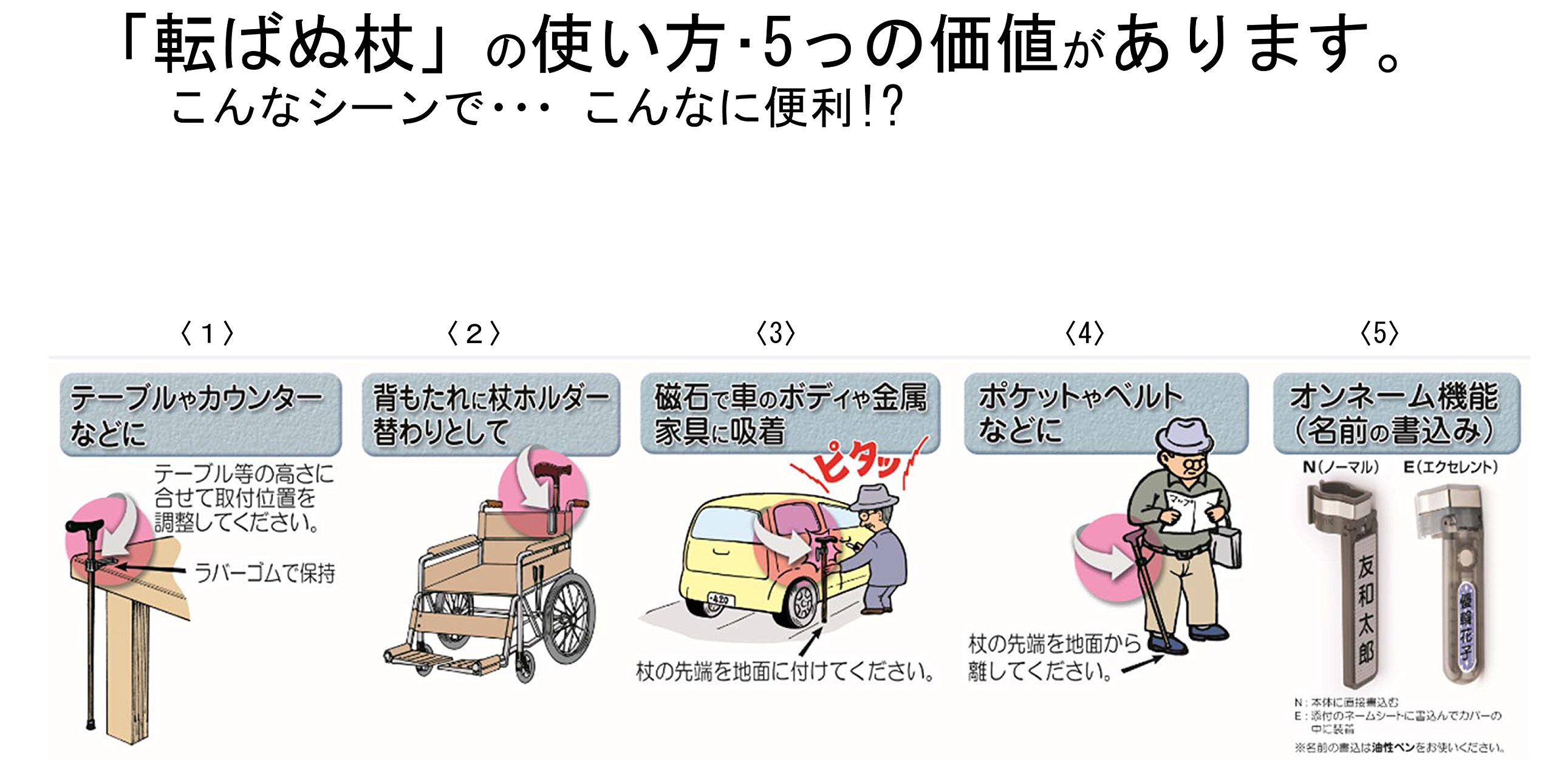 Just by one-touch fitting on the cane, it is stood by the table etc, and fixed on the steel surface by magnet.