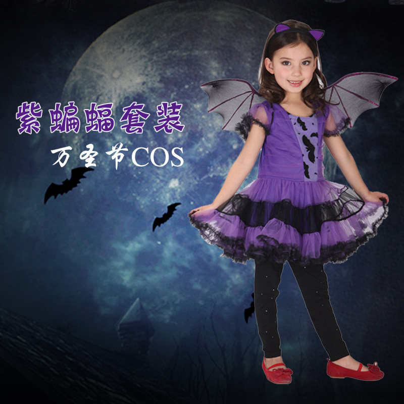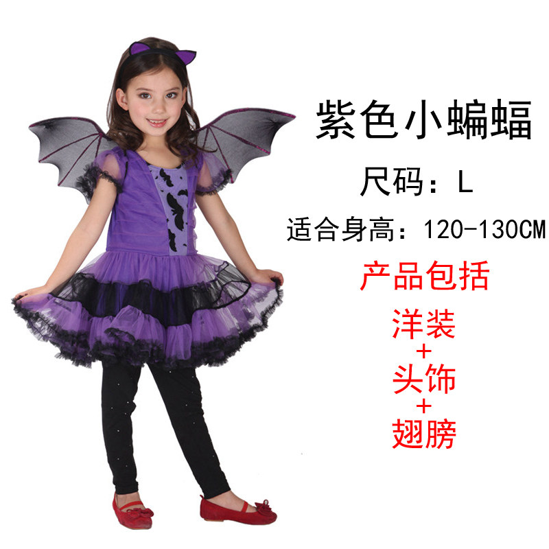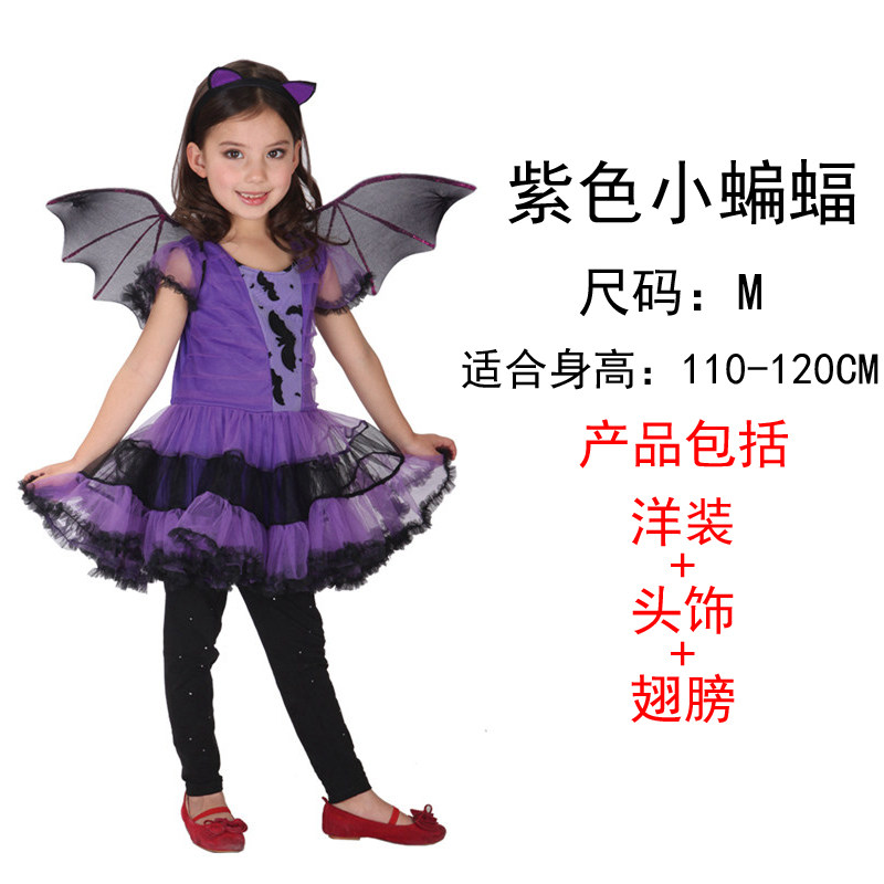万圣节新款儿童服装cosplay舞台表演演出小蝙蝠动物服紫色蝙蝠装