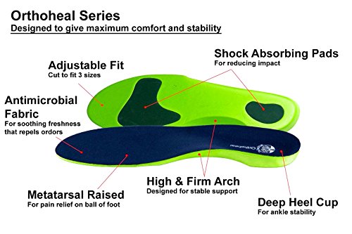 Studio : The Tree Of Life Company Publisher : The Tree Of Life Company Binding : Health and Beauty Product Description PROVEN PODIATRIST PREFFERED ORTHOHEAL SERIES ?-Orthotics contours designed by podiatrists to help you combat foot problems like flat feet,arch pain, heel spur,bunions, ankle pain,plantar fasciitis ,over pronation,and impact control for long hours walking. Carefully tried and tested by individual with everyday foot problems. Helps to distribute and minimize pressure in the foot , keeping the foot bone vertical and enhancing stability that helps corrects your posture.Our insoles are design to correct knee pain, backache?- CUSHIONING SHOCK ABSORBING MEMORY FOAM Exact combination of firm arch support and impact cushioning will help you find relief and provides the best comfortable support experience?- ANTI MICROBIAL ODOR PREVENTION FRESHNESS-Material naturally repels bacteria and prevents odors for fresh and all day long wears. You may lightly rinse with warm water and mild soap to prolong the life of your insoles ?- FIT MOST FOOTWEAR .Fits mens and womens sports shoes(sneakers),running shoes,hiking boots, dress shoes, work boots, street shoes, sandals,dress boots.? THE TREE OF LIFE GUARANTEE-We stand by our Orthotheal Series with a 100% Money Back 30-Day Guarantee.The Tree Of Life Company looks forward with you to making the world a better place, one step at a time. Doctors highly recommends that you replace your insoles every 3 months to promote healthy feet ? INCLUDED IN YOUR PURCHASE: 2 Orthoheal Insoles,Free Gift A Tree Of Life Socks Bag. 0