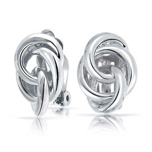 These love knot clip on earrings are ideal for any occasion or outfit. It features a triple circle knot design and has a lightweight feel. The rhodium plated base metal makes it an ideal gift for anyone who has a very refined taste in jewelry. Do not miss out on these fantastic pair of earrings that are so versatile you can wear them on any occasion whether it is attending a wedding or dinner out with friends.Feature